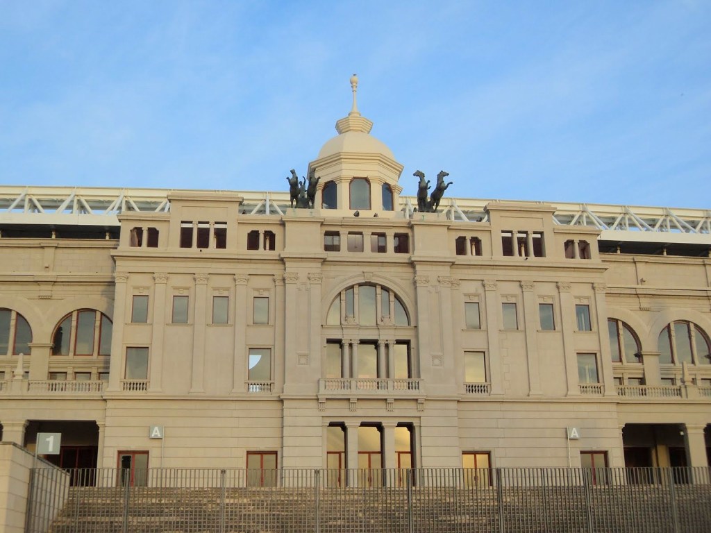In the morning, we headed out to take the cable car to Montjuic Castle. There were great views from the cable car on the way up. The cost for a roundtrip cable car ride is 15.30 Euros for adults, 10.80 for kids 4-12 years, and free under 4 years of age. The entrance fee for the Castle is 12 Euros and is free for kids under 8. It’s also free Sundays after 3pm and every first Sunday of the month (per their website https://ajuntament.barcelona.cat/castelldemontjuic/en). It was very interesting to walk around and see the fortress and learn the history. After that, we took the cable car back and went to Placa d’Espanya. Interesting things to see there and I loved the architecture of the National Art Museum (though we did not go in). Also nearby was the Olympic Stadium where the 1992 Olympics were hosted. You can take a tour for free as long as there are no events going on. Once we finished touring the stadium, we were quite tired and headed back to our hotel, grabbing dinner first.