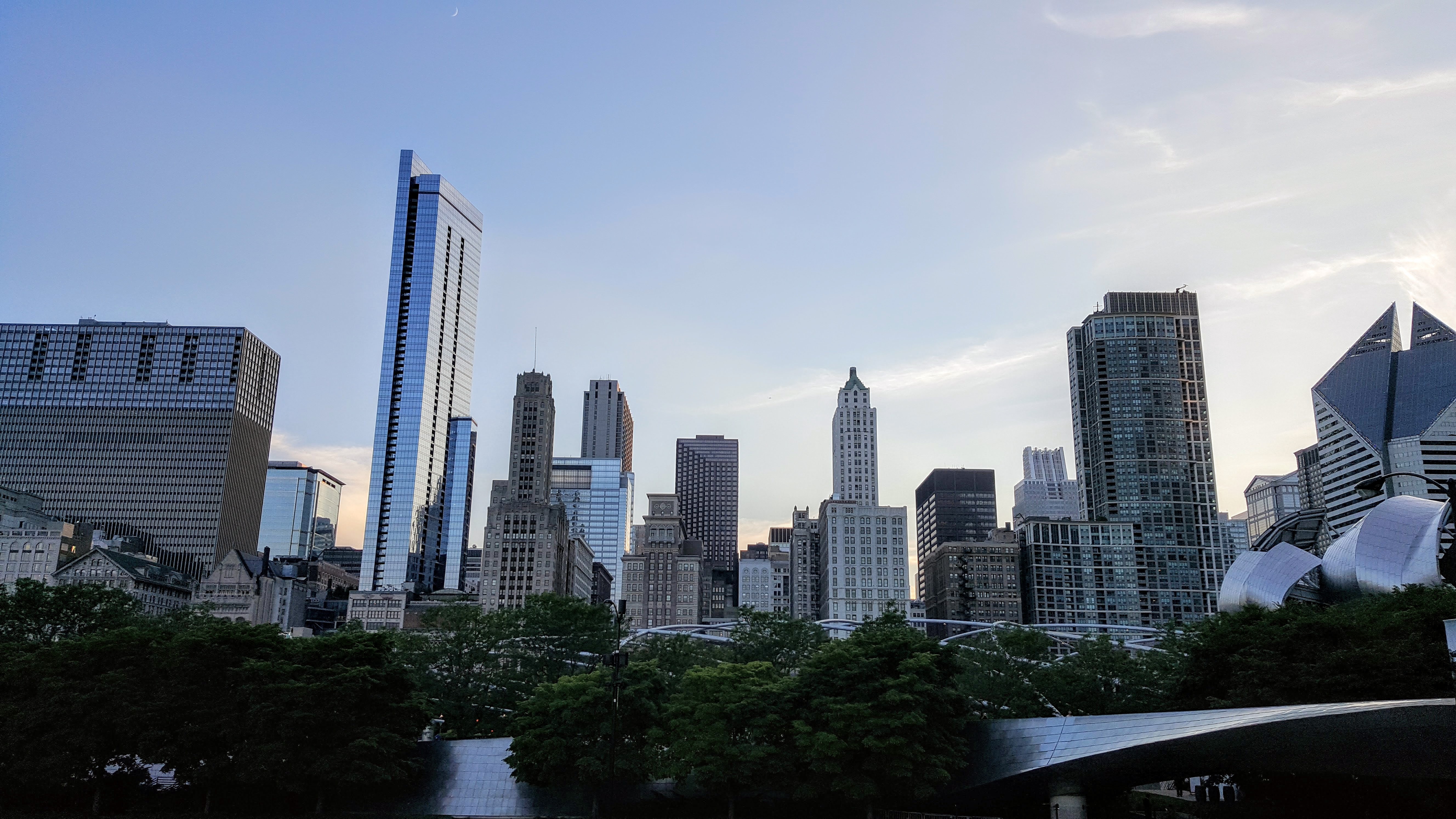 That evening we went to Portillo’s & Barnelli’s on Ontario Street, about a half-mile from the hotel. There’s plenty of seating, but it was definitely a busy place! We ordered some Chicago-style hot dogs, which were great (not halal though). Afterwards, we went to Millennium Park to see the stainless steel “Bean“. The official name is “Cloud Gate”. Not the most exciting, but it was cool to see the skyline mirrored and it’s iconic so of course we had to stop and snap some photos. I’m sure my kids now would enjoy it. Millennium Park was nice to walk around so it was worth a stop. We stayed until sunset and then headed back to our hotel so the little guy could sleep. It was about a mile to the hotel so we took a cab to get back.